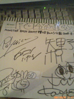 バッシュ行った時にもらった、ポリのサインです!!!どどーん! マジ家宝・・・!!!コレ書いているハヤシの姿想像して萌え・・・!!! そして今日は我が心の友、ショウちゃんがウチに殴りこみに来ました。 近くのショッピングセンター内の文房具屋で1時間くらい居座り・・・! どんだけ・・!!どんだけ・・・!! 文房具屋さんて、何か心ときめきますよね!! メモ帳とか、ペン類とか・・使う目的も無いのに欲しくなってしまう・・ 長いこと居続けたせいでしまいには地べたに座って話し込み・・ 超☆迷惑!! 旅の思い出を残す用のアルバムを買って帰りました テープカッター買うつもりで行ったのに・・・あれれ~?? うん!!ヨシ!!! |