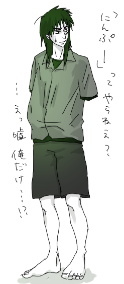 「指定したキャラがもし~だったら、みたいな妄想⇒反応するバトンです」 なるほど、日頃の妄想力を試す試験的なバトンということですね、分かります。 指定キャラ⇒【カイジ】 キターーーーーーーーーーー!!!!!! はいはい、がんばるよ!!むしろ頑張らなくても普段から妄想はしてるかrゴニョゴニョ・・・・ ☆語尾が「わん」な【カイジ】 自分から言ってるんじゃなくて言わされてるんだよねきっと。 なぜなら伊藤だから。帝愛の犬だから。 たぶん坊ちゃんあたりがこういうプレイ好きそうだな。変態だから。坊ちゃんだから。 できるっ・・・・!!こいつはこういうこと平気で出来る奴なんだっ・・・・!!! 「決めたっ・・!お前は今日から俺のペットだ・・・!分かったなっ・・・!!」 「おいっ・・・!やめろよっ・・・!!趣味悪いぞ・・!!」 「あ゛ぁ~~・・・?それがご主人様に対する口の利き方か~・・? それともその首と体、切り離されたいのかよ・・・?ヤだったら大人しく犬になれよ」 こうですか!分かりません>< ☆RPGより落ちゲー好きな【カイジ】 好きそう。でも弱そう・・・ププ・・・かわいい・・・・!!! ☆海パン姿の【カイジ】 っていうかもう全裸シーン多いから海パンごときじゃあ・・・・・・・・ ・・・・・・・・・ねえ・・・・? ☆ふんどし姿の【カイジ】 上に同じく・・・・・・・・・ ・・・・・・・・・・ねえ・・・・・・・・・? ☆恋愛映画で号泣する【カイジ】 か、かわいすぎる・・・・・!!!!!! ☆メールは絵文字多し!な【カイジ】 きもい。 ☆お昼が【カイジ】の手作り弁当 くれ。皿まで喰う。 ☆実は裁縫が趣味な【カイジ】 いずれ誰かのとこに嫁ぐからそのくらいできないとね!! 誰とは言わないが!!!誰とは・・・!!フーーー・・・・!フーーー・・・!!ハァ・・・・!!ハァ・・・!! ☆おでこぶつけて半泣き状態の【カイジ】 佐カイでお願いします 「カイジさ~~~~ん、起きなくていいんすかぁーーー?もう出勤時間すよー」 「・・・ぅん・・・・・・・あ゛ぁっ・・!!?」 時計を見たカイジは慌てて身を起こす。 「何で起こしてくれなかったんだよっ・・・!!」 ばかやろう、悪態を吐きながら急いで支度をしようとした拍子に 躓いて机の角におでこを強くぶつけてしまった。 「・・・・・・っ・・・~~~~~~~!!!!」 「・・・・カ、カイジさん・・・?大丈夫っすか・・・・?」 身を丸めて動かなくなっているカイジを心配して覗き込む 「・・・っ痛っっ・・・・・て・・・・・・・」 こんな時に何やってんだよと、情けなさからカイジの目から涙がこぼれる。 「・・・カイジさん・・・・」 「何・・・・・・・っ・・!」 声のするほうを振り向いた瞬間、おでこに柔らかい感触。 「・・・・痛いの飛んでったss ばーーーーか!!!!!ばーーーか!!!!(最大級の笑顔) ☆何故か白衣装着の【カイジ】 白衣よりナース服がいいな、うん。 回す人は自由らしいのでね、エヘ・・・ やってみたい方ご自由にお持ち帰りくださいな。 あとコッソリ言うだけ返しでカンユさんにアカギで・・・ニコ・・・!お時間ありましたらっ・・! |