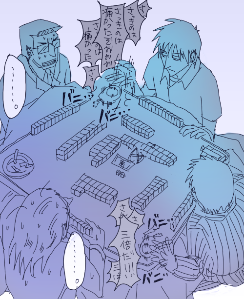 仲間内でやってる麻雀で たま●っちみたいな形の、ボタン押すと声出るやつあるんですよ・・・ガチャガチャのオモチャで。 で ドラゴン●ールの声のやつで フ●ーザ様「さっきのは痛かった・・・痛かったぞおおおお!!」の奴と ゴク●「三倍だ!!!」ってのを持ってきてる人がいて、 他家に振り込んだりツモられたときとかに フリー●様をバニバニ押したりテンパイ宣言代わりに押したり 三倍満の手を張ったりアガったときにゴ●ウをバニバニしたり もうこれが面白すぎてみんなバニバニ押しすぎて楽しかった・・・!!! 序盤に国士を張った瞬間 上家からあっさり出てアガっただけで その後なーーーーーんもしてないのにツモにやられてしまった。 5順でリーチ、即ツモがデフォってなんなの・・・。 多面なら分かる、シャボとかペンチャンでも引っ張ってくるって・・・・。 なにあれ。こっちはまだ字牌処理中なんですけど・・・・っていう・・・。 後半親番のときに倍満手張ったんですけど、下家が白、發鳴いてて 中が場に2枚出てて自分が1枚持っててコレ落とせばテンパれたのですが ミエミエのホンイツ、ヤオチュー出てなかったのでホンロー、トイトイ、小三元で 花ドラも引いてたのでデカくて3倍かなーっていうのだった こんな中の単騎当たったらヤだなとかって思ったけど突っ込んでリーチして 通った・・・ので下家の手みたらバラッバラ・・・!!突っ込んでよかった・・・こええー! 中の突っ込みは勇気あると言っていただきました!こっちだって親倍なんだから・・・!! 対面からアガらせてもらったわーい! もっとやりたかったけど途中で気分悪くなってしまって結局負け分取り返せなくて帰ったので、 また負けちゃった・・・!!カカカカ・・・!!ボロ・・・ボロ・・・な、まんま黙示1巻のカイジですた PR |